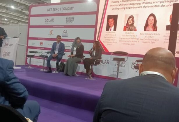 وفي السياق ذاته، شاركت الدكتورة رشا السطوحي، محاضرة بقسم تكنولوجيا المعلومات والاتصالات بالجامعة، كمتحدثة في محور “الاستثمار في الذكاء الاصطناعي وتعلم الآلة: تقليل التكاليف والانبعاثات الكربونية مع تعزيز كفاءة الطاقة، ودمج الشبكات الذكية، وتحسين أداء الألواح الشمسية الكهروضوئية”. كما شاركت في جلسات المؤتمر، مجيبةً عن استفسارات الحضور حول أهمية الذكاء الاصطناعي وتقنيات الطاقة الجديدة والمتجددة.