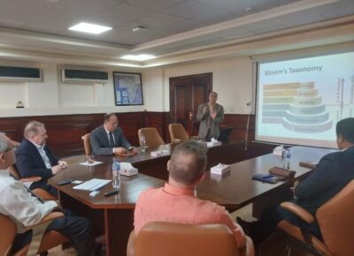 كما قدم الأستاذ الدكتور طارق عبد المالك، عميد كلية تكنولوجيا الصناعة والطاقة، لمحة عامة عن جامعة القاهرة الجديدة التكنولوجية، مستعرضًا البنية التحتية للجامعة وتطورها، وطرق التدريس، والاعتماد على نظام الكفاءات، والتدريب العملي للطلاب.
